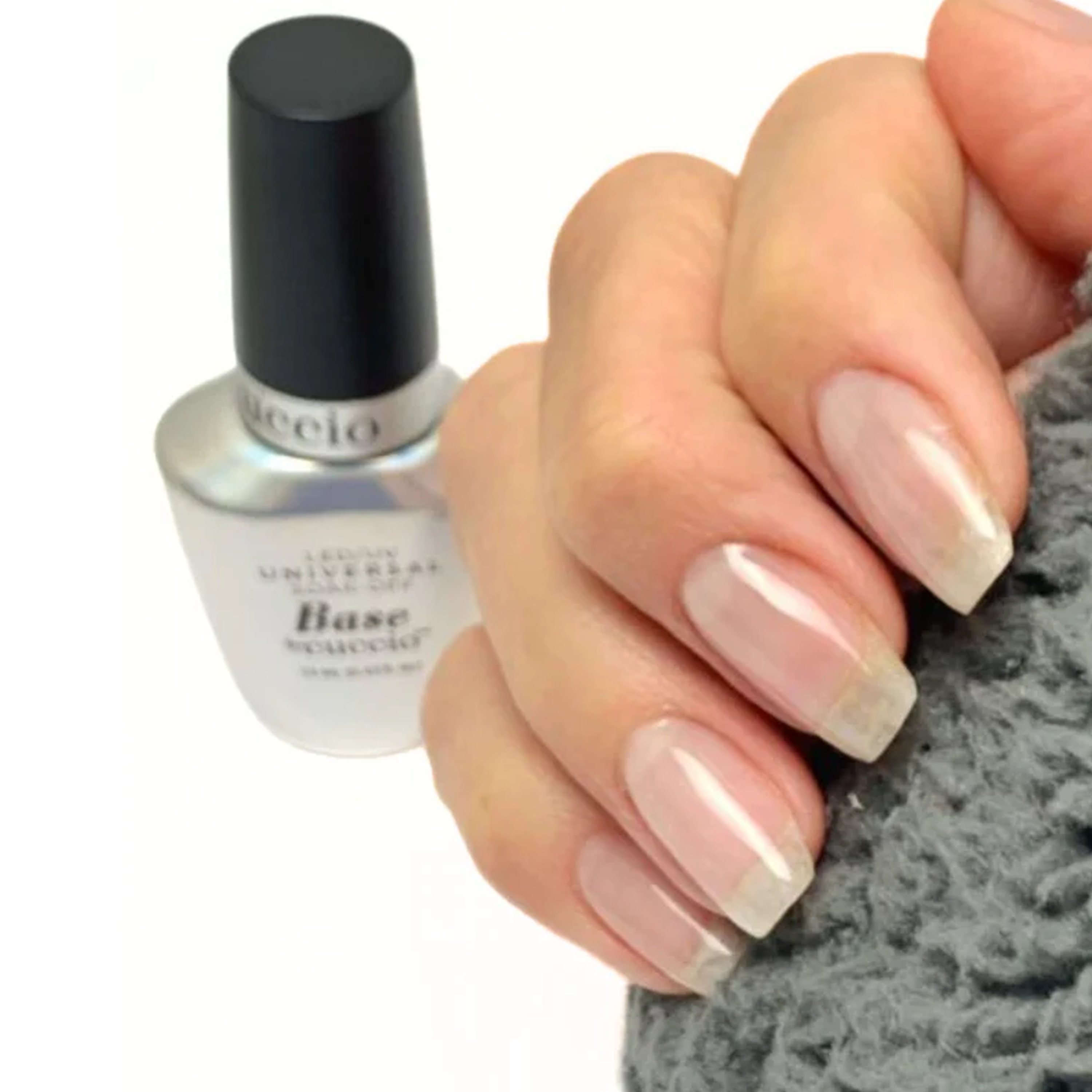 - Aplica una capa delgada de la Base Universal Soak-Off de CUCCIO en la uña, evitando la cutícula y los bordes laterales.