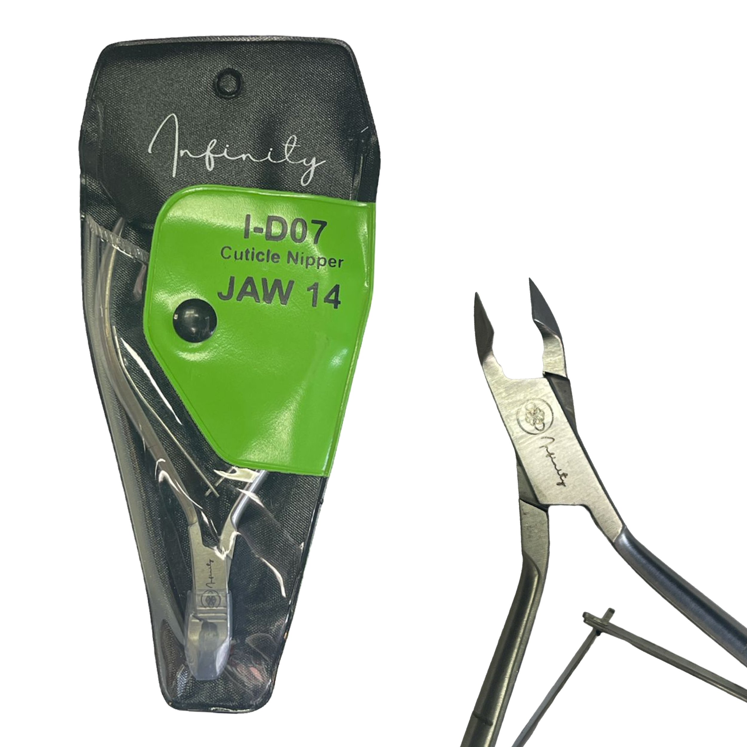 Descubre las Pinzas Profesionales para Cutículas INFINITY, disponibles en acero inoxidable mate o pulido y con tamaños de mandíbula de 7 mm o 8 mm. Cuchillas de precisión, agarre ergonómico y rendimiento de calidad de salón para profesionales y usuarios en casa.
