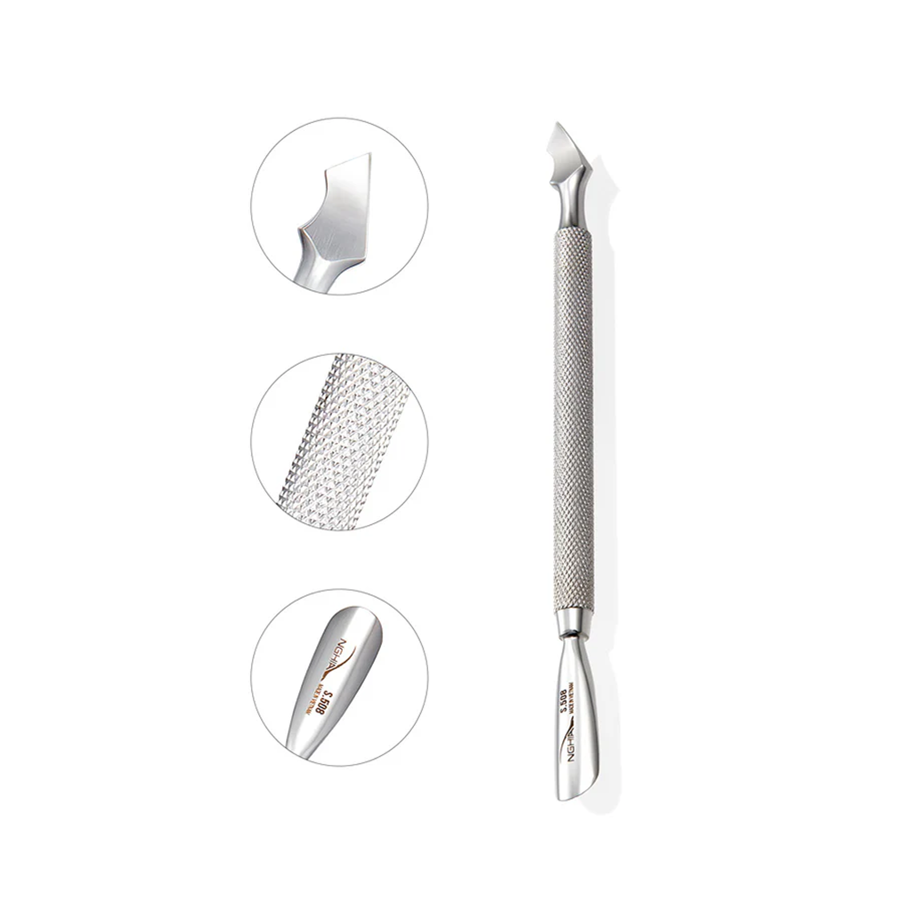 Ya sea que realices una manicura o pedicura, el Empujador NGHIA S-508 garantiza resultados impecables en todo momento. Confía en NGHIA para herramientas que elevan tu rutina de cuidado de uñas.